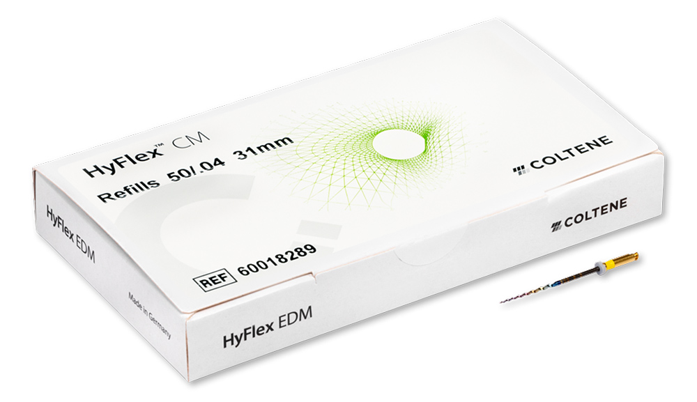 Die HyFlex CM Feilen bestehen aus Nickel-Titan-Legierung mit Controlled-Memory-(CM-)Thermobehandlung, die sie extrem flexibel und widerstandsfähiger gegen zyklische Belastungen macht. Somit können sich die Feilen optimal an die Kanalanatomie anpassen und die Risiken einer Via falsa, Verlagerung des Kanalzentrums oder Perforation des Kanals werden erheblich reduziert. Dies erlaubt auch ein Vorbiegen ähnlich wie bei Edelstahlfeilen. Speziell bei extrem gekrümmten Wurzelkanälen lässt sich so eine Stufenbildung vermeiden. Diese Formanpassung kann schnell rückgängig gemacht werden, indem die Instrumente mittels Wärme ihre ursprüngliche Form wieder annehmen. Durch eine optische Kontrolle nach der Thermobehandlung lässt sich eindeutig erkennen, ob eine Feile weiterhin sicher eingesetzt werden kann.