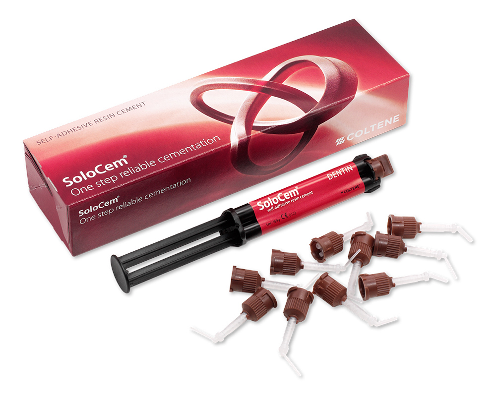 SoloCem ist ein Komposit-Zement für nahezu alle indirekten Befestigungsindikationen, wie dem Zementieren von Kronen und Brücken, Wurzelstiften, In- und Onlays auf Zahnsubstanz oder Implantatabutments. Je nach Situation kann SoloCem entweder selbst-adhäsiv oder adhäsiv, in Kombination mit ONE COAT 7 UNIVERSAL, verwendet werden.