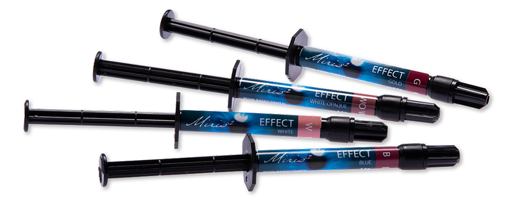 Kompositrestaurationen lassen sich durch gezielten Einsatz von MIRIS2-Effektfarben zusätzlich veredeln. Je nach Fall und Indikation können Restaurationen mit den vier Effektfarben Blue, White, White Opaque und Gold individuell charakterisiert werden. Selbst in herausfordernden Fällen schafft der Zahnarzt so ästhetisch hochwertige Lösungen.