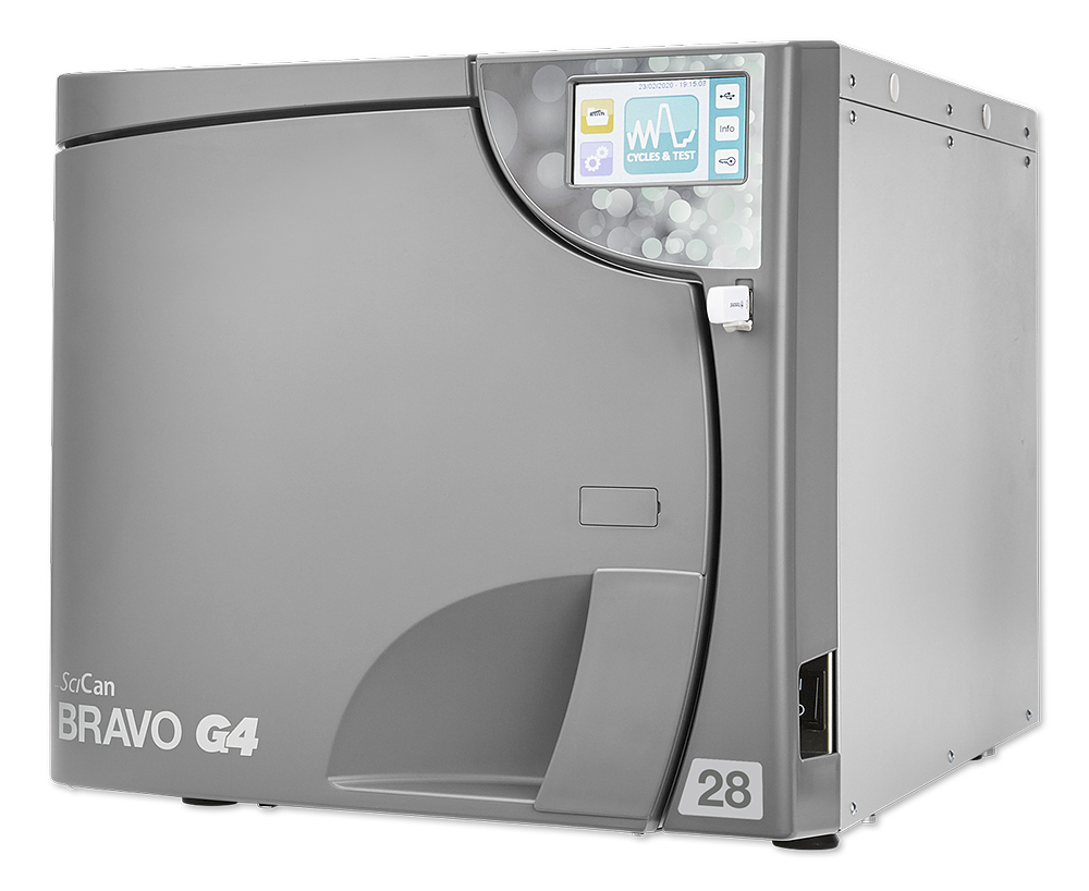 The BRAVO G4 Chamber Autoclaves are Class B sterilisers that addresses a dental office’s need for speed, capacity, and efficiency. Its cutting-edge sterilisation technology incorporates both pre-sterilisation vacuum to improve steam penetration and post-sterilisation vacuum to improve drying.