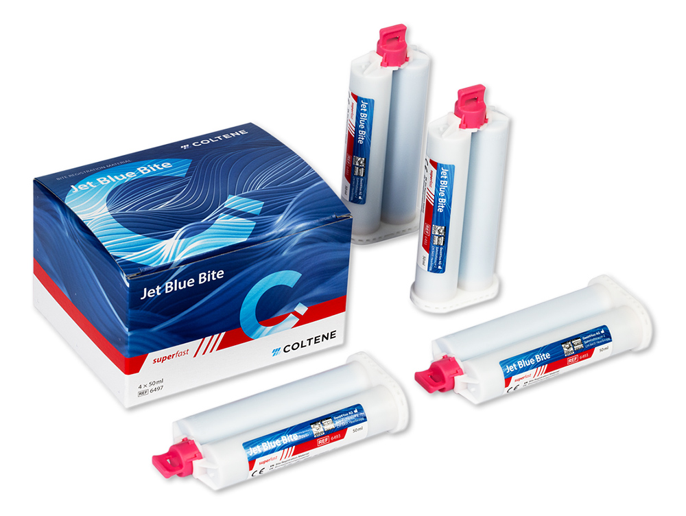 JetBlueBite is the choice for dentists seeking the highest precision. The mousse-like, homogeneous consistency allows the patient to achieve natural occlusion without resistance. With a special spreader tip and a short setting time, the bite situation is quickly secured. JetBlueBite offers not only comfort, but also a high final hardness of 89 Shore A to ensure easy processing.