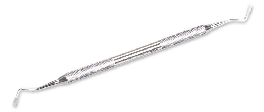 Los instrumentos de acero inoxidable de doble extremo facilitan la colocación del hilo de retracción alrededor del diente.
