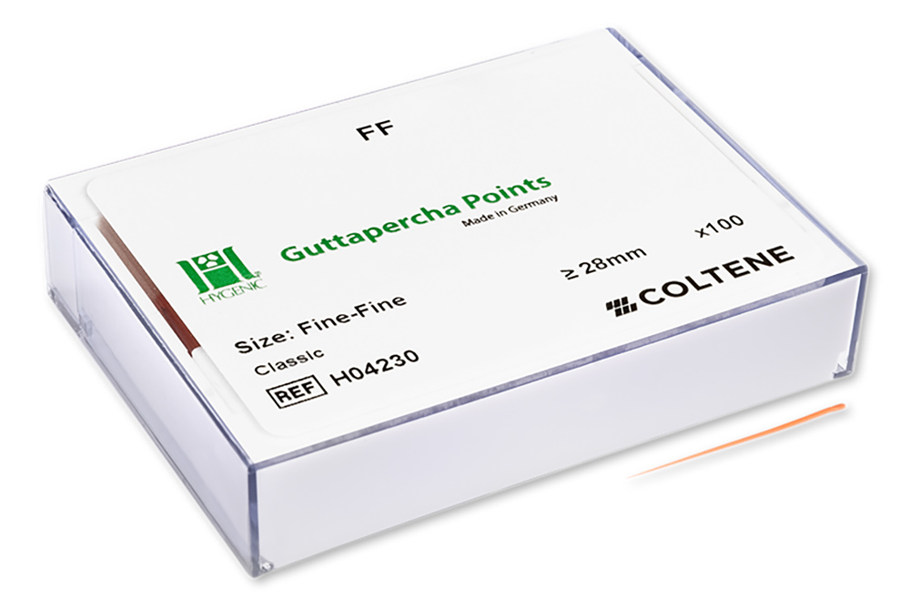 Las puntas convencionales de gutapercha HYGENIC tienen una forma más cónica y son adecuadas para su uso como puntas accesorias para técnicas de condensación.