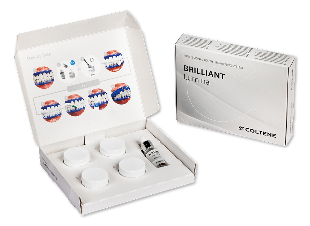 Con BRILLIANT Lumina dispone de una innovadora solución en la clínica para el blanqueamiento dental: por primera vez, una fórmula sin peróxido de hidrógeno ni peróxido de carbamida. BRILLIANT Lumina está elaborado a base de PAP (ácido ftalimidoperoxicaproico)."
