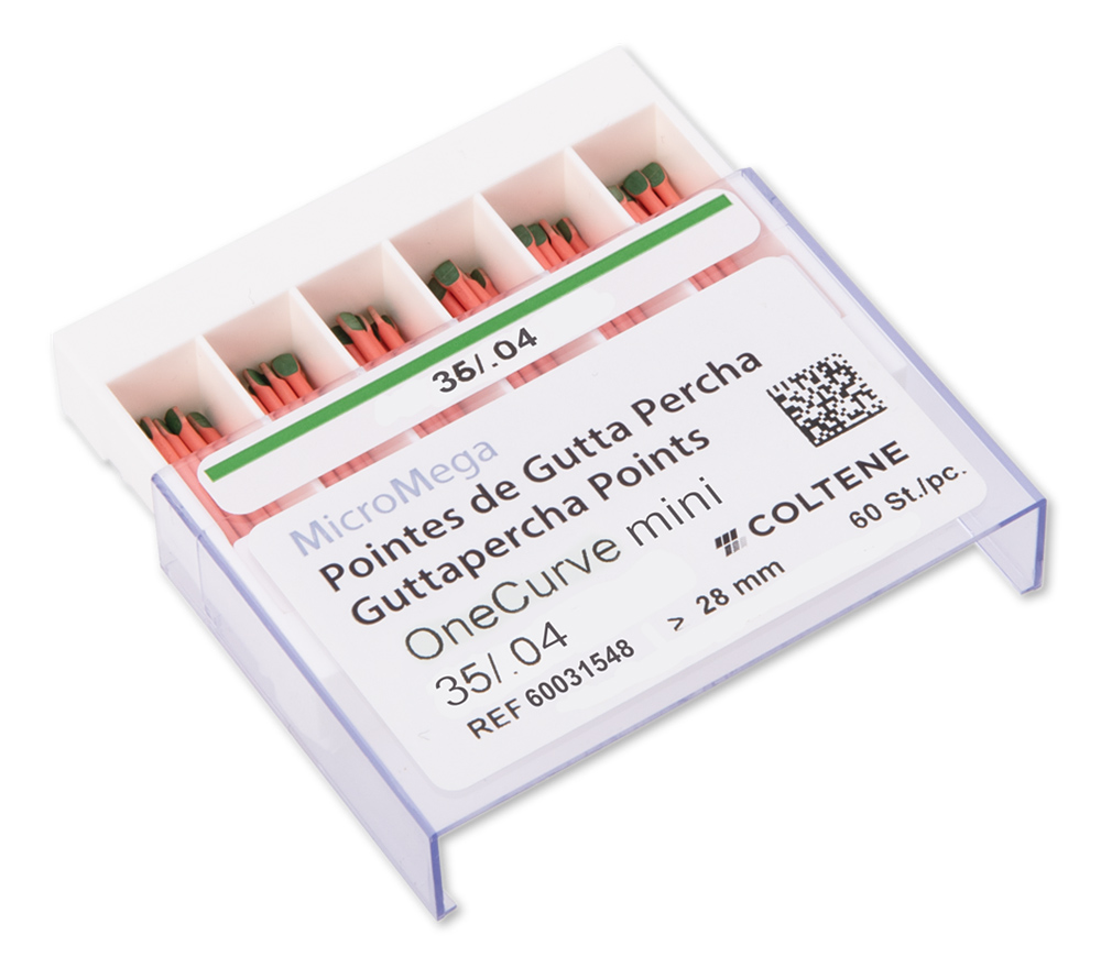 Las puntas de gutapercha MicroMega One RECI son ideales para obturar el conducto radicular previamente preparado con las limas One RECI.