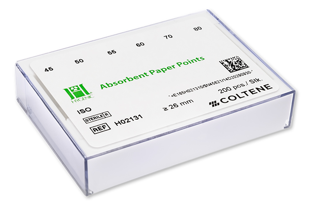 La forma cónica de las puntas de papel convencionales HYGENIC significa que son idóneas para secar más conductos radiculares cónicos.
