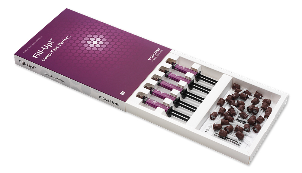 Fill-Up! est le choix parfait pour les obturations de classes I et II, en fond de cavité et pour les faux moignons – toutes les fois où une restauration rapide est nécessaire ou pour les cavités difficilement accessibles avec la lampe à polymériser.