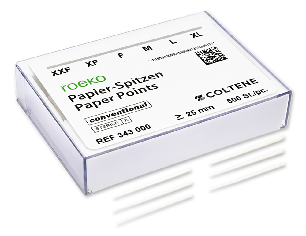 La forme conique des pointes de papier classiques ROEKO les rend parfaites pour le séchage des canaux radiculaires plus coniques. Les pointes blanches sont plus coniques que les pointes ISO et sont proposées en assortiment ou dans chaque taille ≥ 25 mm.