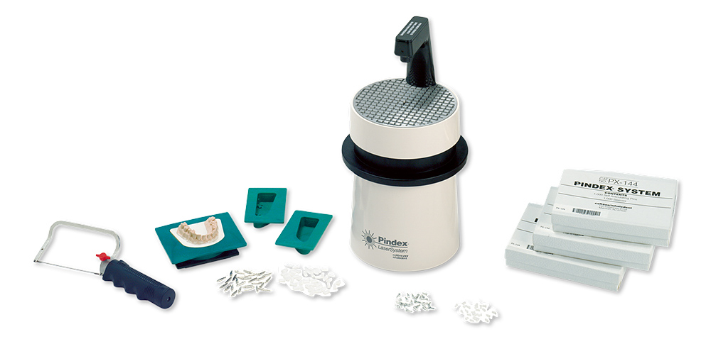 Il sistema PINDEX è considerato il «benchmark» nella realizzazione del modello. Offre una soluzione semplice per realizzare fori precisi e paralleli. Foragessi con puntatore laser: garantisce la realizzazione di fori paralleli per un inserimento rapido, agevole e affidabile dei perni