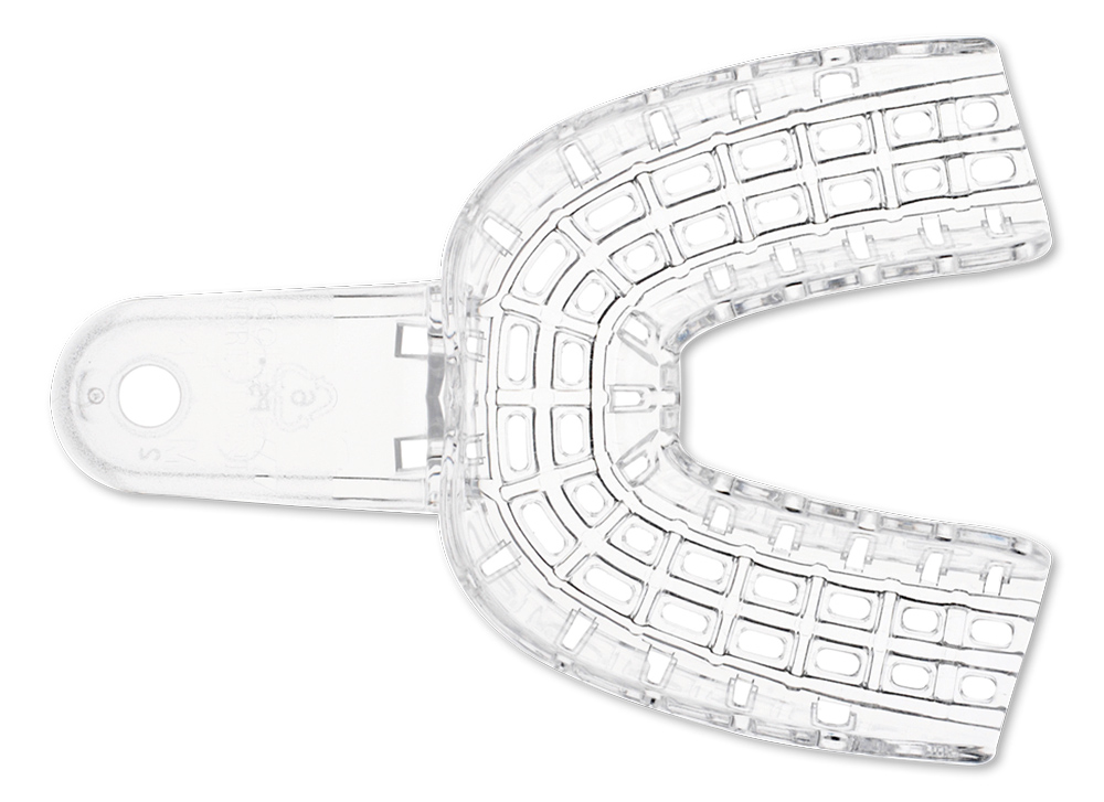 Um sistema patenteado de frisos e calhas em intersecção oferece uma rigidez sem precedentes numa moldeira de plástico. A forma anatómica alivia o encaixe e assegura uma moldagem perfeita. Autoclavável e não autoclavável.