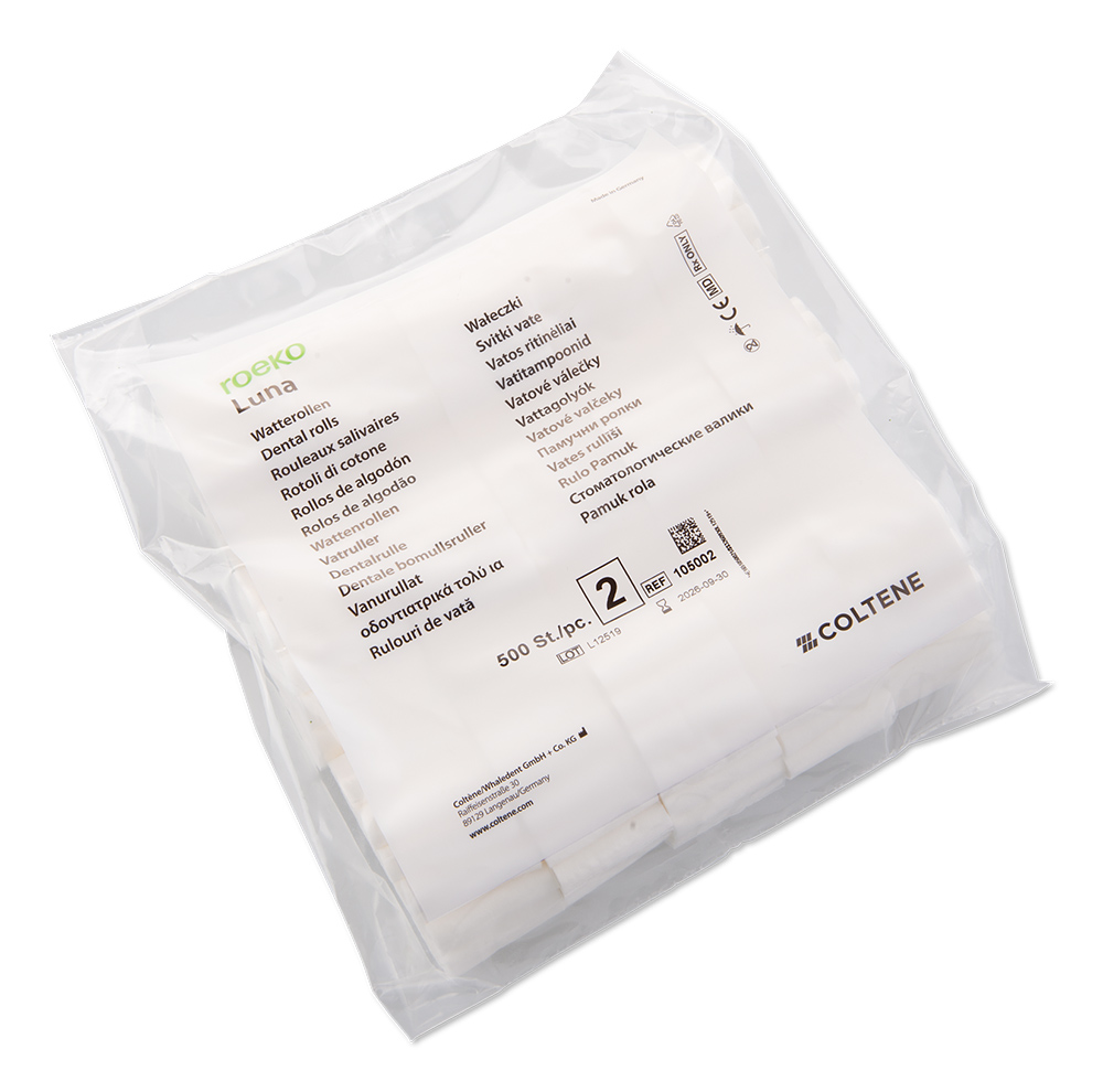 Luna is the proven classic among dental rolls, it is tried and tested since decades. Luna is persuading by its ability to retract cheek, lips and tongue effectively and to keep the operative area accessible and free of excess moisture. It continuously absorbs moisture and retains it even under pressure.
