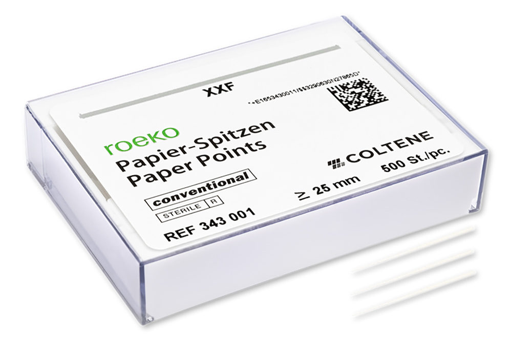 The tapered shape of ROEKO paper points conventional means they are ideal for drying more conical root canals. The white points are more tapered than ISO points and available assorted or in individual sizes ≥ 25 mm.