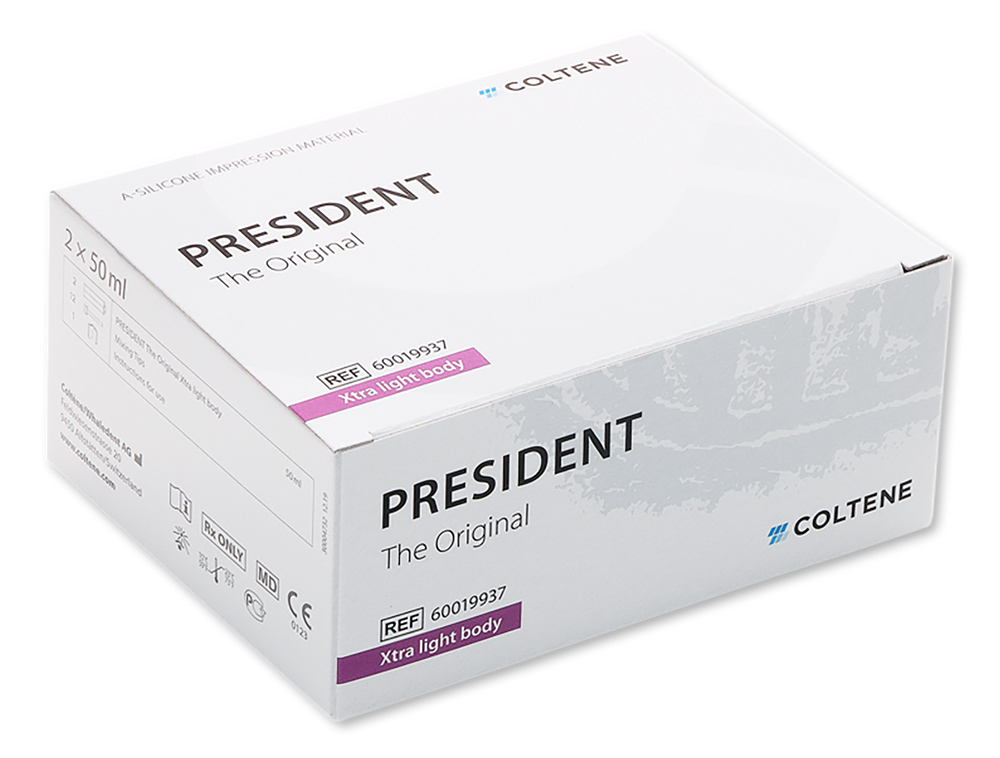 O novo portfólio de material de correção da PRESIDENT The Original oferece, além do light body e do regular body, uma viscosidade adicional: o Xtra light body. Conforme o nome indica, o Xtra light body é um material de correção muito fluido, que pode ser usado para captar mesmo pormenores marginais, à medida que flui para as zonas mais estreitas sem pingar do dente.
