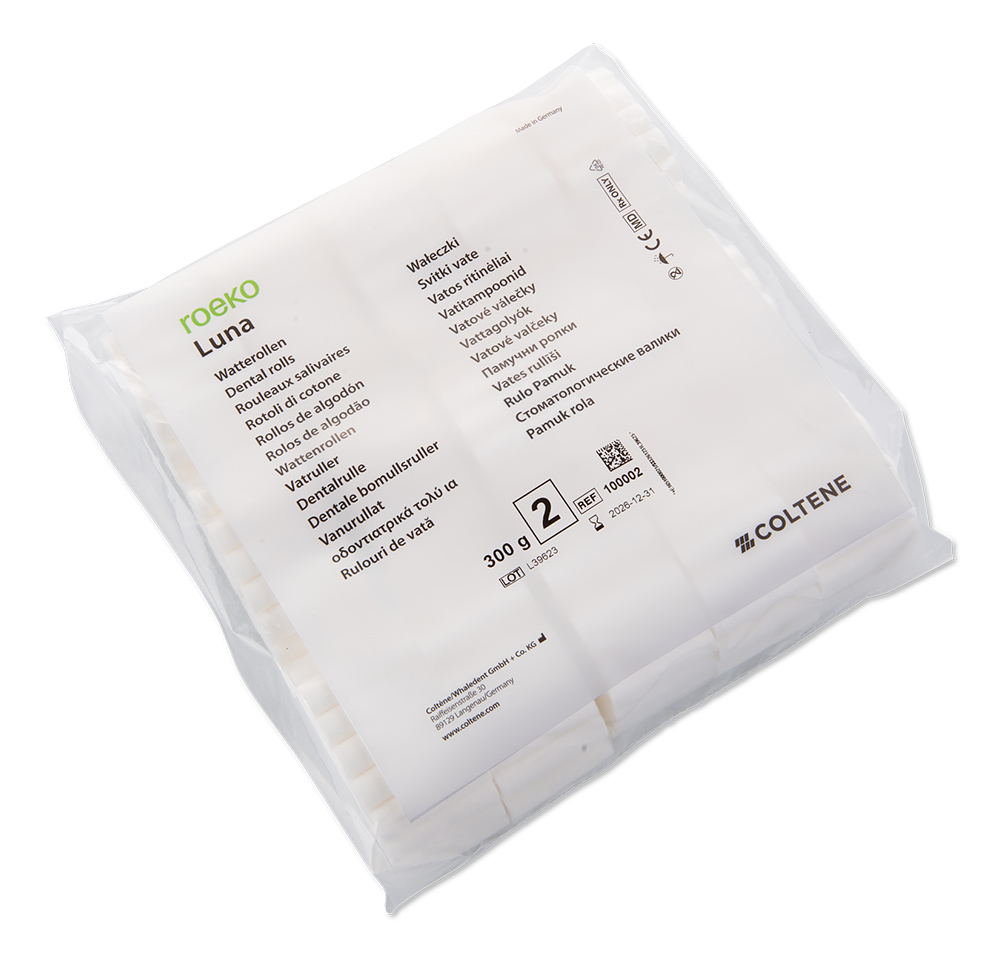 Luna is the proven classic among dental rolls, it is tried and tested since decades. Luna is persuading by its ability to retract cheek, lips and tongue effectively and to keep the operative area accessible and free of excess moisture. It continuously absorbs moisture and retains it even under pressure.