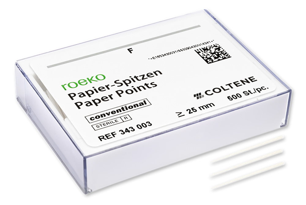 The tapered shape of ROEKO paper points conventional means they are ideal for drying more conical root canals. The white points are more tapered than ISO points and available assorted or in individual sizes ≥ 25 mm.