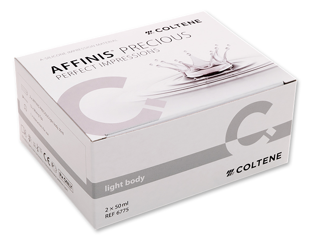 AFFINIS PRECIOUS foi desenvolvido para produzir resultados precisos na boca e no laboratório. A molhabilidade permite ao gesso húmido escorrer mais facilmente para dentro do molde, produzindo modelos em gesso pedra mais precisos. Um molde preciso é a chave para que o técnico de laboratório possa criar restaurações de encaixe perfeito.