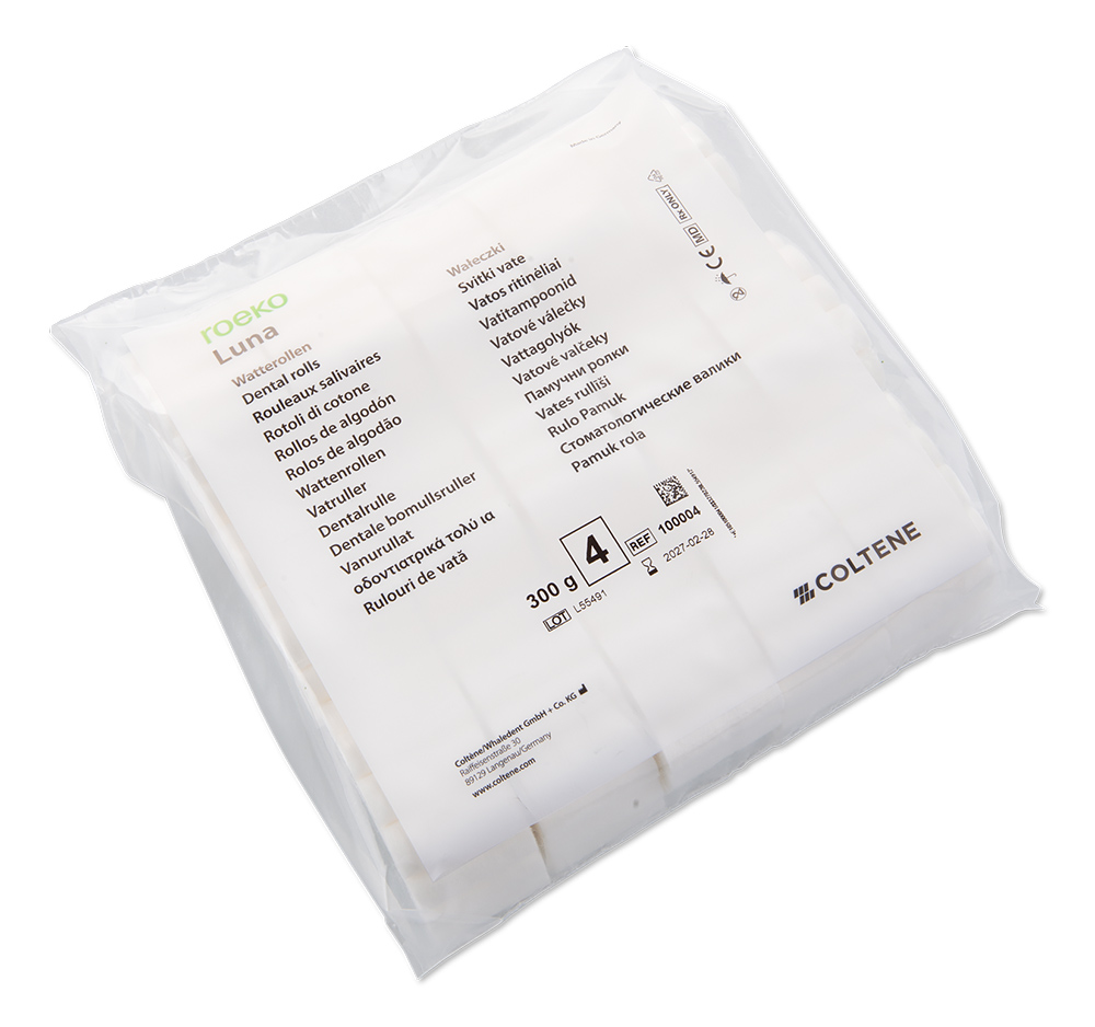 Luna is the proven classic among dental rolls, it is tried and tested since decades. Luna is persuading by its ability to retract cheek, lips and tongue effectively and to keep the operative area accessible and free of excess moisture. It continuously absorbs moisture and retains it even under pressure.