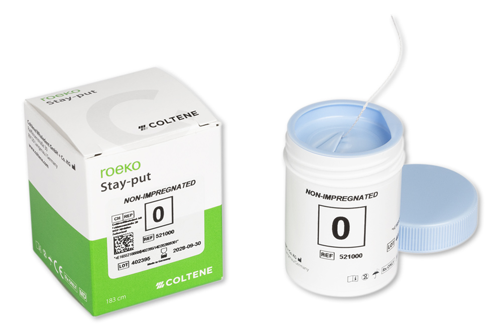 Ретракционная нить Stay-put представляет собой комбинацию тонкой металлической направляющей проволоки и витой ретракционной оплетки. Нить легко вносится в зубодесневую область и хорошо держит форму.